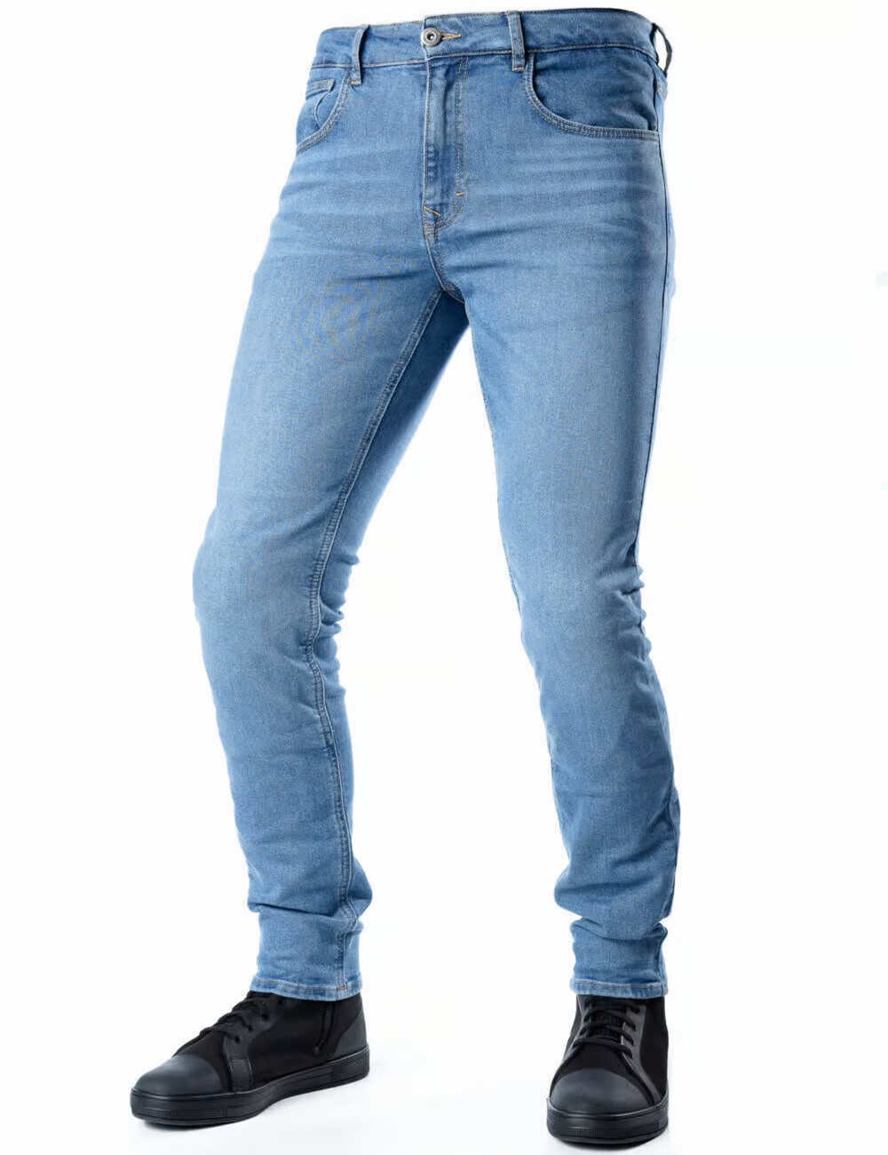 Motorjeans in een klassieke en getailleerde snit.